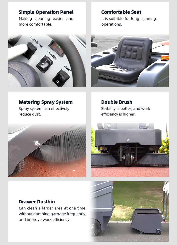 CAPT-E8006 Simple Operation Panel Large-Capacity Dustbin Ride on sweeper