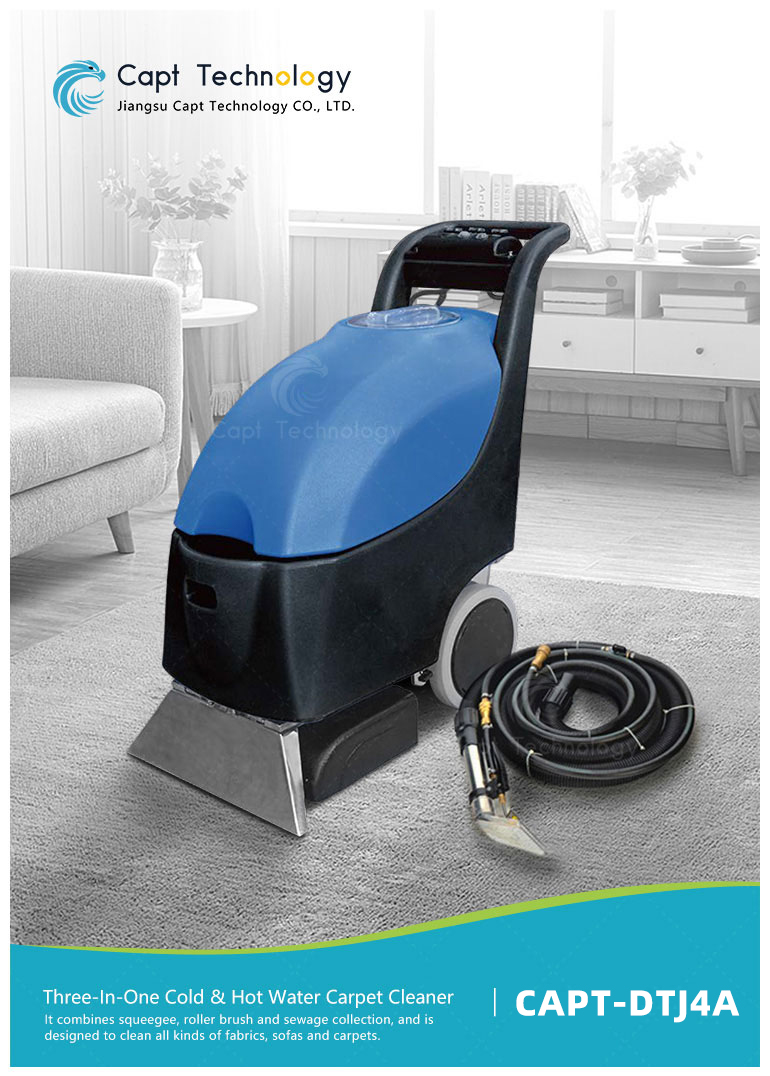 The three-in-one cold & hot water carpet cleaner combines squeegee, roller brush and sewage collection, and is designed to clean all kinds of fabrics, sofas and carpets. Mainly used in offices, hotels, halls and other carpet sites.