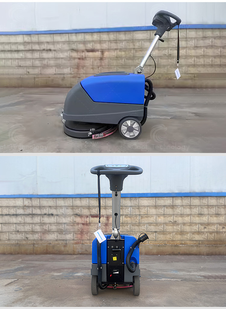 It is an ergonomically designed hand-push scrubber, it is stylish and practical, easy to operate and low maintenance. The ground cleaning can be completed cleaning quickly during the use process, and the sewage can be automatically recovered at the same time of cleaning, realizing a practical and quick cleaning effect.