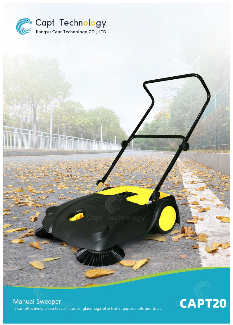 This sweeper is exquisite in design and unique in technology. The whole machine does not need any electromechanical power. The rotation of the tire drives the belt, then drive to rotate the inner "roller brush" and the front two "side brushes", Just push and walk and you can easily recycle your rubbish to the bin.