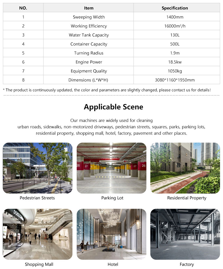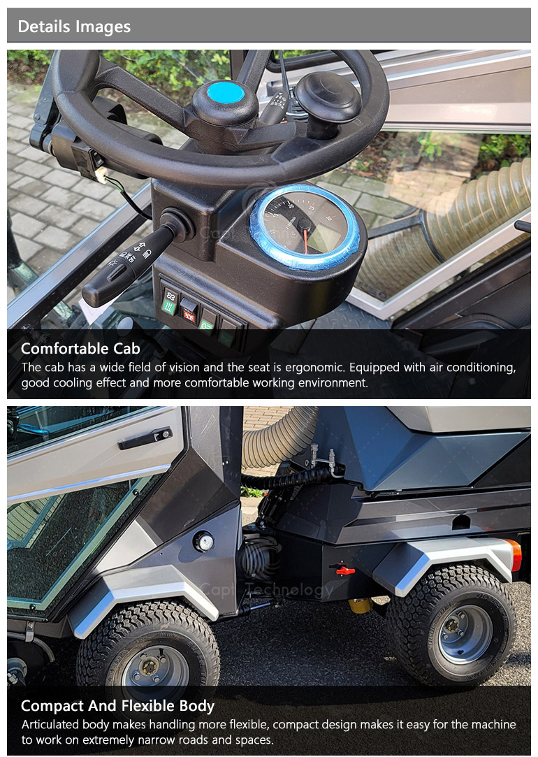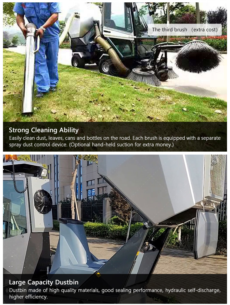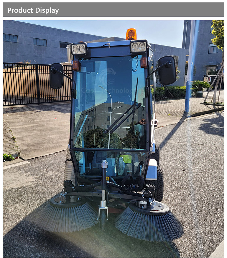 It’s widely used in cleaning work of urban roads, sidewalks, non-motorized roads, pedestrian streets, squares, parks, parking lots and other places. Especially suitable for narrow curved road cleaning.